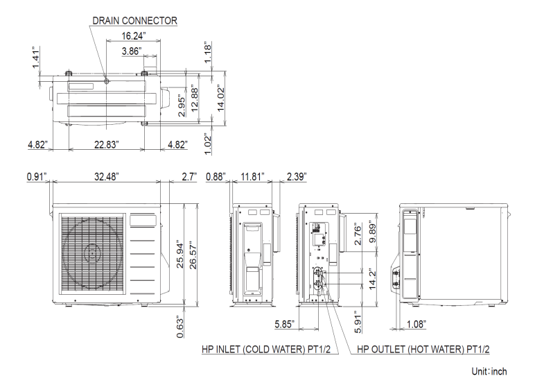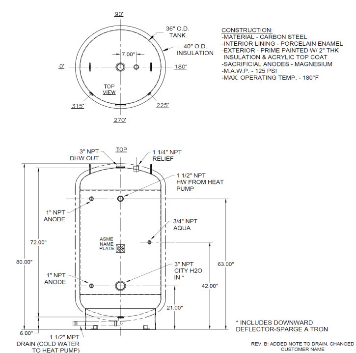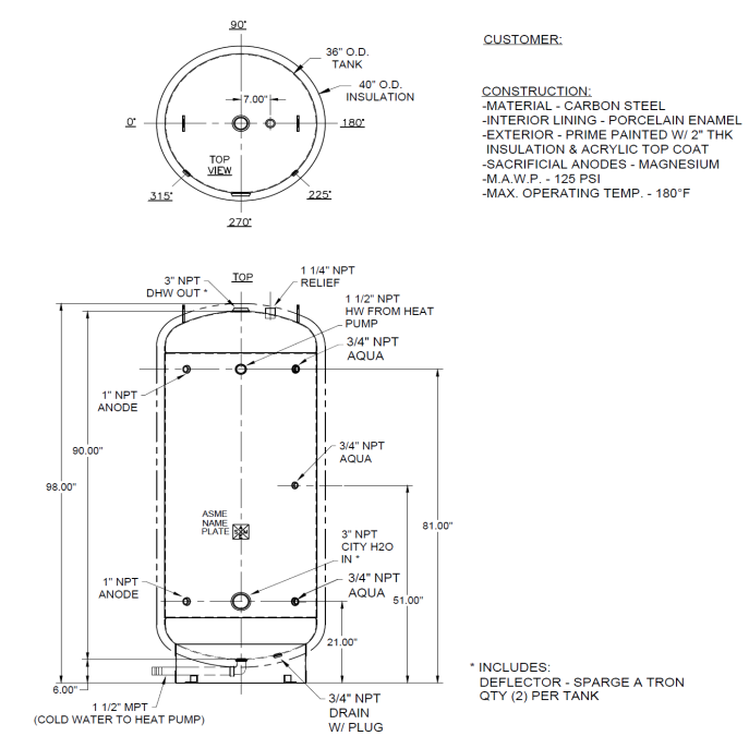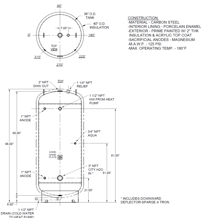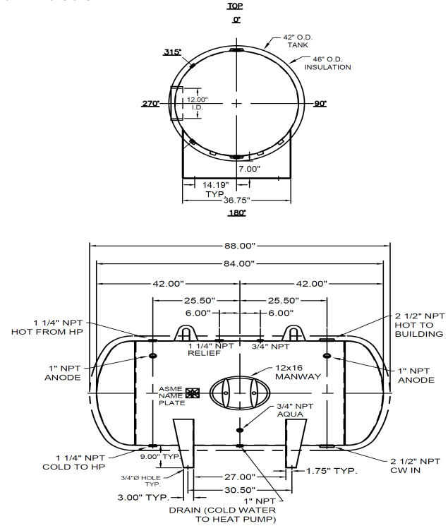 - Large connection sizes (3″ NPT tank fittings, 1½” NPT heat pump connections) for optimal flow
