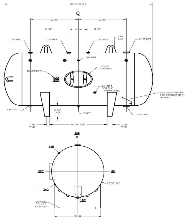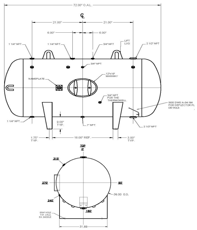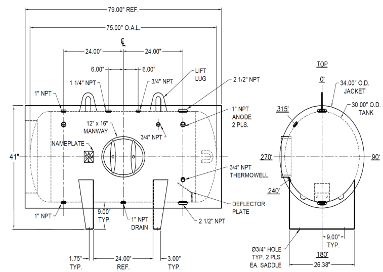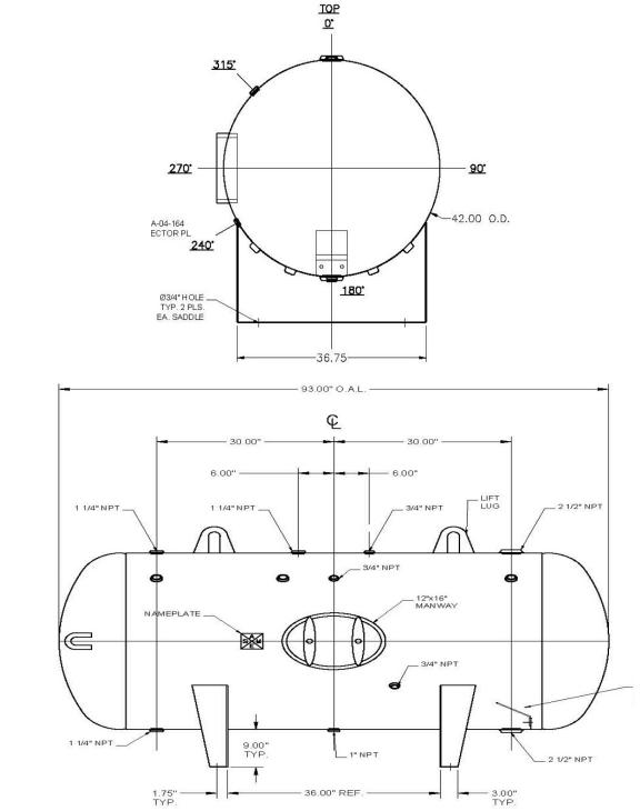 - 360-gallon nominal (397-gallon actual) capacity