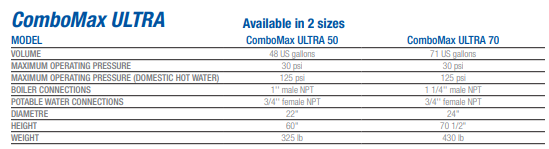 Compact and nearly maintenance-free, the ComboMax ULTRA saves space, provides excellent water quality, and offers a long service life. Its T2 UltraSmart™ controller ensures precise temperature management and optimal comfort. The unit is backed by a 15-year warranty on the tank and a 2-year warranty on electrical and mechanical parts.