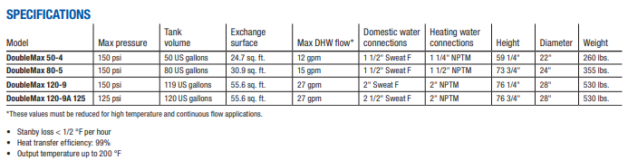- Instantaneous domestic hot water production (40 °F to 140 °F in under 7 seconds)